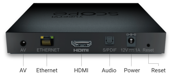 1. YuppTV Scope Media Player2. Remote 3. HDMI Cable4. Power Adapter5. Ethernet Cable 6. AV Cable7. User Manual8. Two AA Batteries